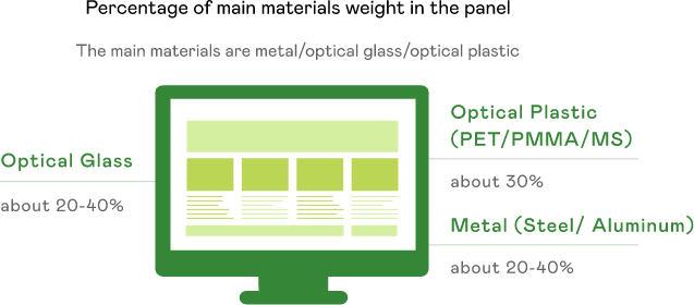 AUO is leading the industry by using 30% post-consumer recycled plastics in plastic frames, demonstrating a commitment to the use of recycled materials. Additionally, AUO is exploring the application of high-quality optical-grade recycled plastics, such as optical films and light guides, which require advanced quality and technology. AUO continues collaborating with suppliers capable of physical and chemical recycling to develop recycled materials and validate product feasibility.